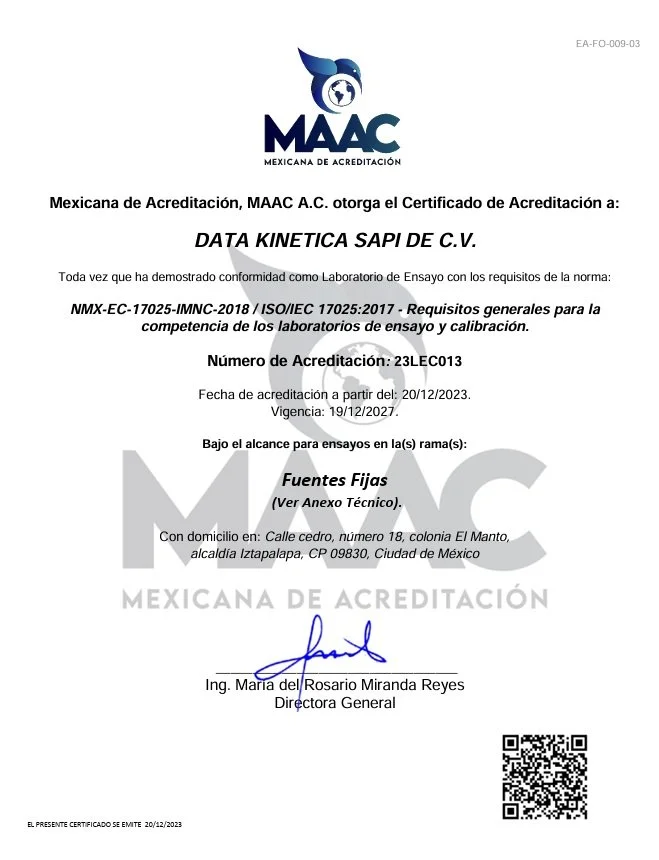 Nuestro Laboratorio de Pruebas DATA KINETICA está acreditada por MAAC en:
